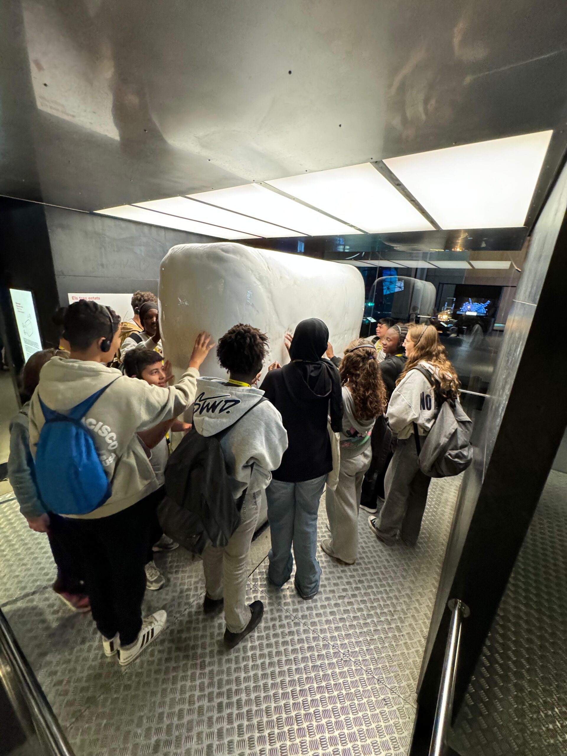 El dimarts 21 d’octubre l’alumnat de 2n d’ESO A i B va anar d’excursió a Barcelona per visitar el museu del Cosmocaixa, on va poder gaudir d’una jornada plena d’aprenentatges i experiències. Van participar en dos tallers: un dedicat als estats de la matèria, on van experimentar els canvis físics de les substàncies, i un altre sobre l’aigua, en què van descobrir les seves propietats i la seva importància per a la vida.
