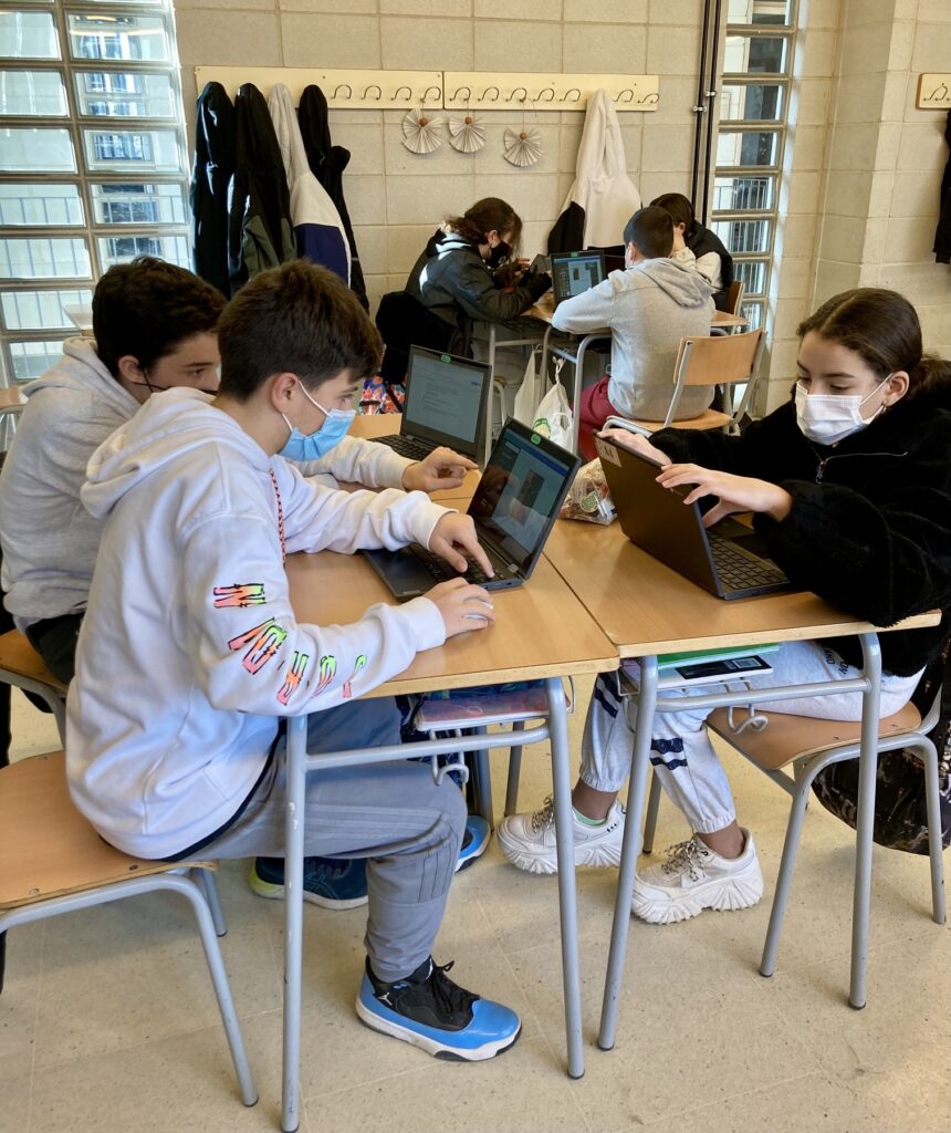 Els alumnes de 1r d’ESO s’han transformat en periodistes de cap a peus. Per grups han decidit a qui podien fer una entrevista, han reflexionat sobre quines preguntes podien ser més interessants, han enregistrat l’entrevista i, finalment, l’han transcrita. S’han hagut d’enfrontar al repte que suposa transformar (sense tergiversar) un discurs oral en un text escrit.