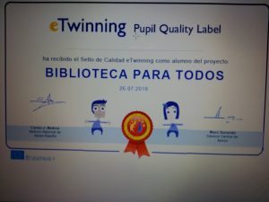 El projecte fomentava la lectura mitjançant recursos alternatius, assumint la biblioteca un paper fonamental en aquesta tasca. El mes de juliol vam saber que el Servei Nacional de Suport eTwinning ens havia concedit el Segell de Qualitat Nacional i ara al mes d’octubre ens han fet arribar el Segell de Qualitat Europeu.