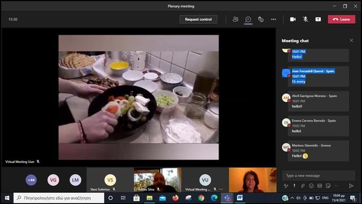 Al vespre, ens conectàvem des de casa i compartíem altres aspectes de la cultura grega, com la cuina, la música i la dansa. Els/les alumnes grecs/es van enregistrar vídeos on ens mostraven com preparar un plat típic de la seva gastronomia, o com tocaven instruments musicals tradicionals.