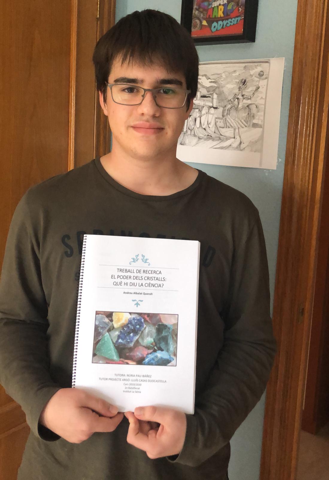 L’alumne de 2BAT, Andreu Albalat, ha rebut un premi al seu treball de recerca: “El poder dels cristalls: Què hi diu la ciència?”