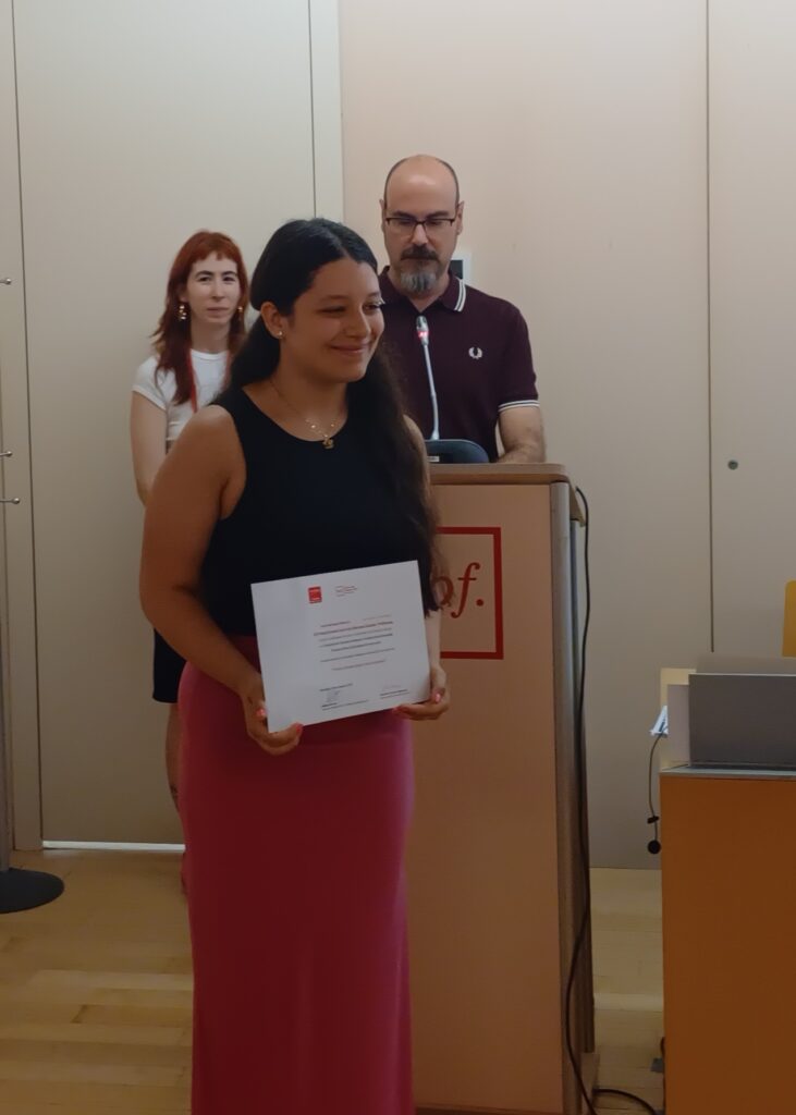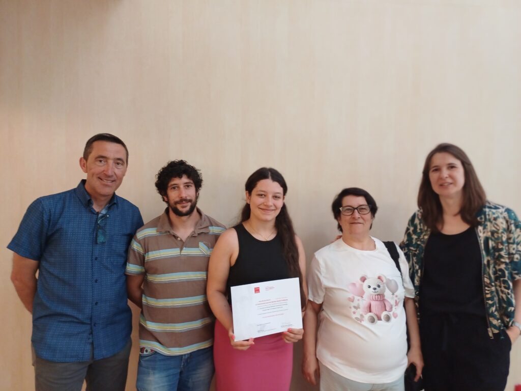 A l’acte de lliurament, celebrat a l’auditori de la mateixa universitat el divendres 30 de maig, va estar acompanyada per la seva tutora Maria Llàtser, família (mare i germà) i director de l’institut. Des d’aquest espai volem felicitar la Irene pel seu treball, per donar visualitat a una problemàtica social actual i per fer possible que el nostre centre hagi estat premiat en aquesta edició. Novament, moltes felicitats, Irene. |
