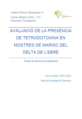 “Avaluació de la presència de tetrodotoxina en mostres de marisc del Delta de l’Ebre” Martina Tolós Campàs |