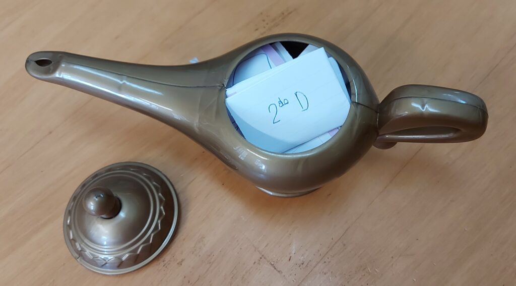 Cinc grups de 2n i 3r d’ESO han començat les classes de la matèria de Llengua Castellana recordant el conte tradicional d’”Aladí i la llàntia meravellosa”. En concret, l’alumnat ha pensat quins tres desitjos demanaria per millorar el món i els ha relacionat amb alguns adjectius que descriuen els membres del grup. Per exemple, els