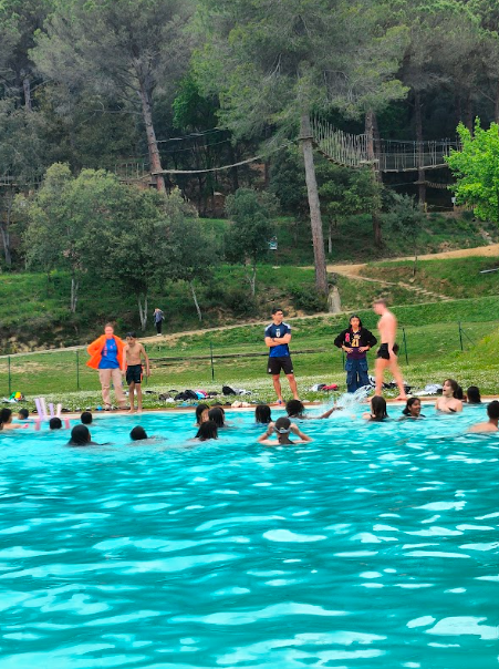 Els i les alumnes de 1r d’ESO que som de colònies a la Garrotxa hem començat el dia amb molt bon peu! Al matí hem pogut fer totes les activitats programades i, com que el temps acompanyava, fins i tot hem tingut una bona estona per banyar-nos a la piscina. Refrescar-se després de tanta activitat sempre s’agraeix!