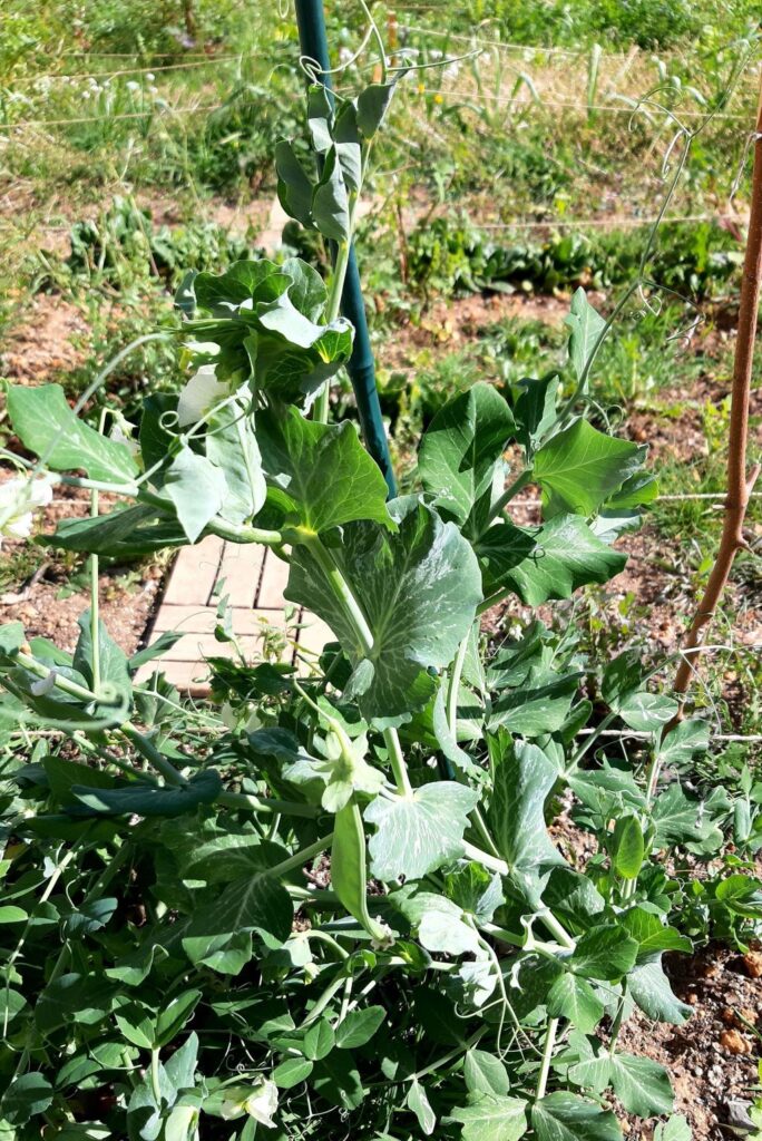 Els pèsols són una planta anual de la família de les lleguminoses. Els pèsols poden mesurar entre 70 i 100 cm i floreixen amb unes flors blanques i s’han de posar pals perquè s’enredin i creixin més rectes i alts.