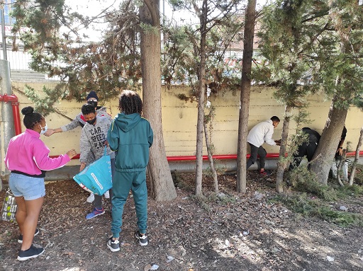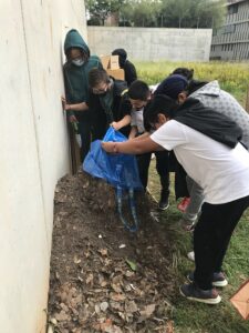 També hem anat a buscar matèria orgànica, bàsicament fulles seques, al pati de l’institut. Abans de llaurar el terreny, escamparem aquesta matèria per millorar la fertilitat del sòl de l’hort.