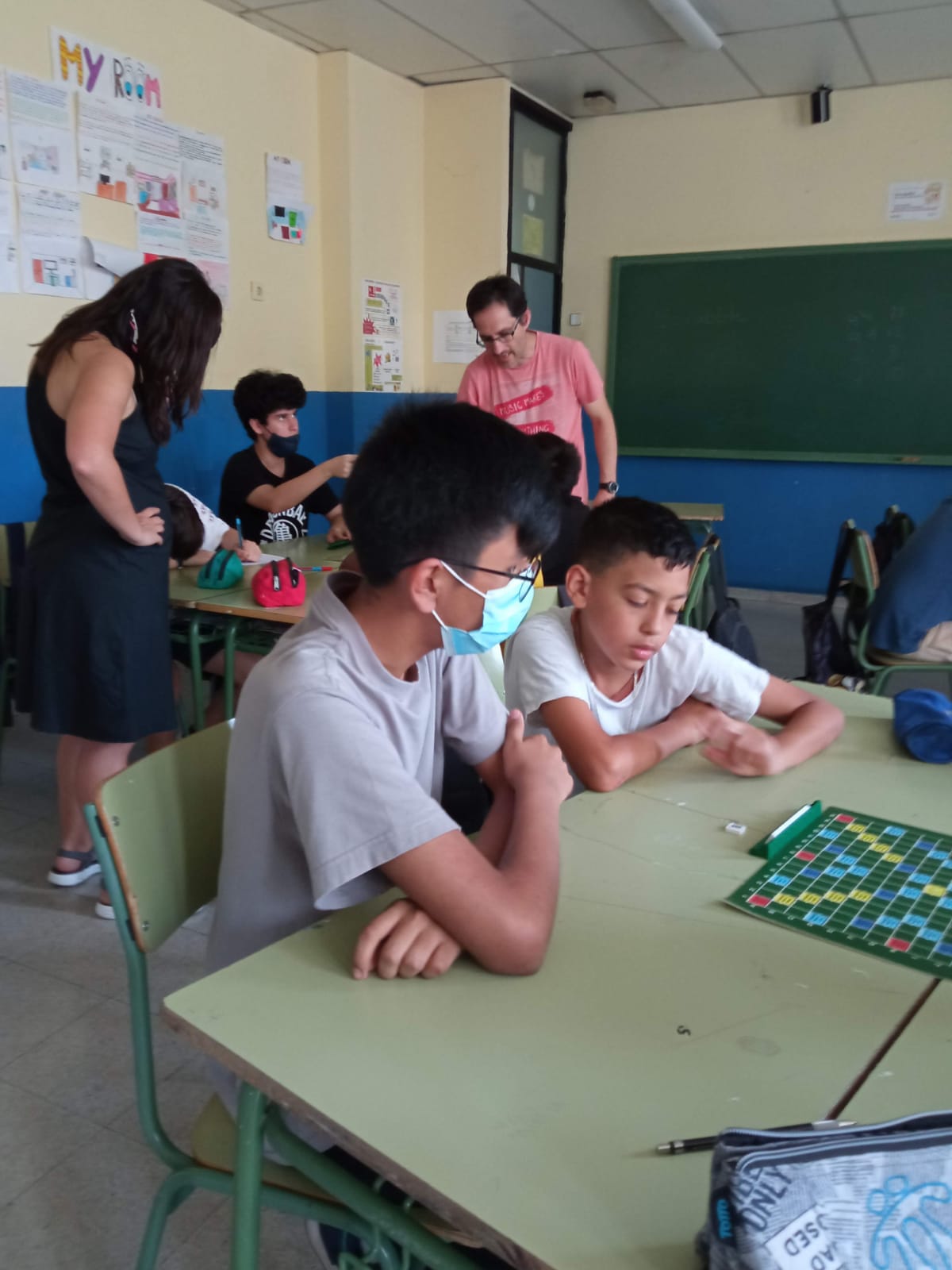 Els alumnes de 1r d’ESO van acabar el curs aprenent a jugar a Scrabble. Els en va ensenyar l’Andreu Pont, el president de l’AMPA, exprofessor de matemàtiques del centre i, sobretot, membre de l’Associació d’Scrabble de L’Hospitalet