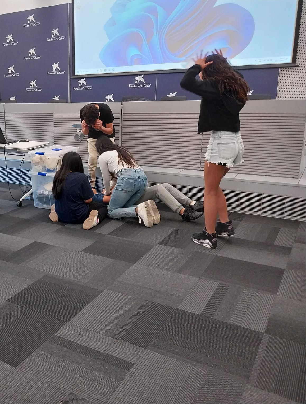 Durante una intensa semana, los distintos grupos de 2.º de ESO se han turnado para asistir a un taller de interpretación en CaixaForum Barcelona: Sentir, pensar… ¡Interpretar! Con una formadora de lujo como es la actriz valenciana Anna Alborch, el alumnado ha participado en juegos teatrales para producir ideas, desde, por ejemplo, la técnica del espejo, en que una pareja se coordina para realizar los mismos gestos de forma simétrica, hasta la representación de varios tableaux vivants (cuadros en los que la acción está en pausa).