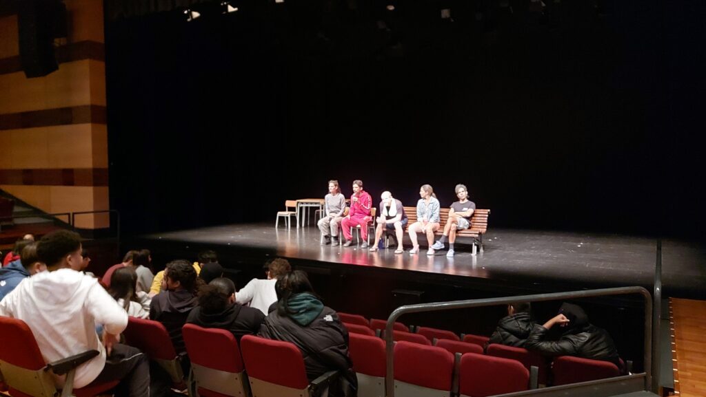 En el marco de las salidas al teatro que organiza periódicamente la materia de Lengua Castellana para el alumnado de nuestro instituto, esta vez ha sido el turno de 2.º de ESO. En concreto, más de 100 alumnos de segundo curso, acompañados por seis profesores, han acudido al Teatre Joventut de L’Hospitalet para asistir a la representación de BullDog.