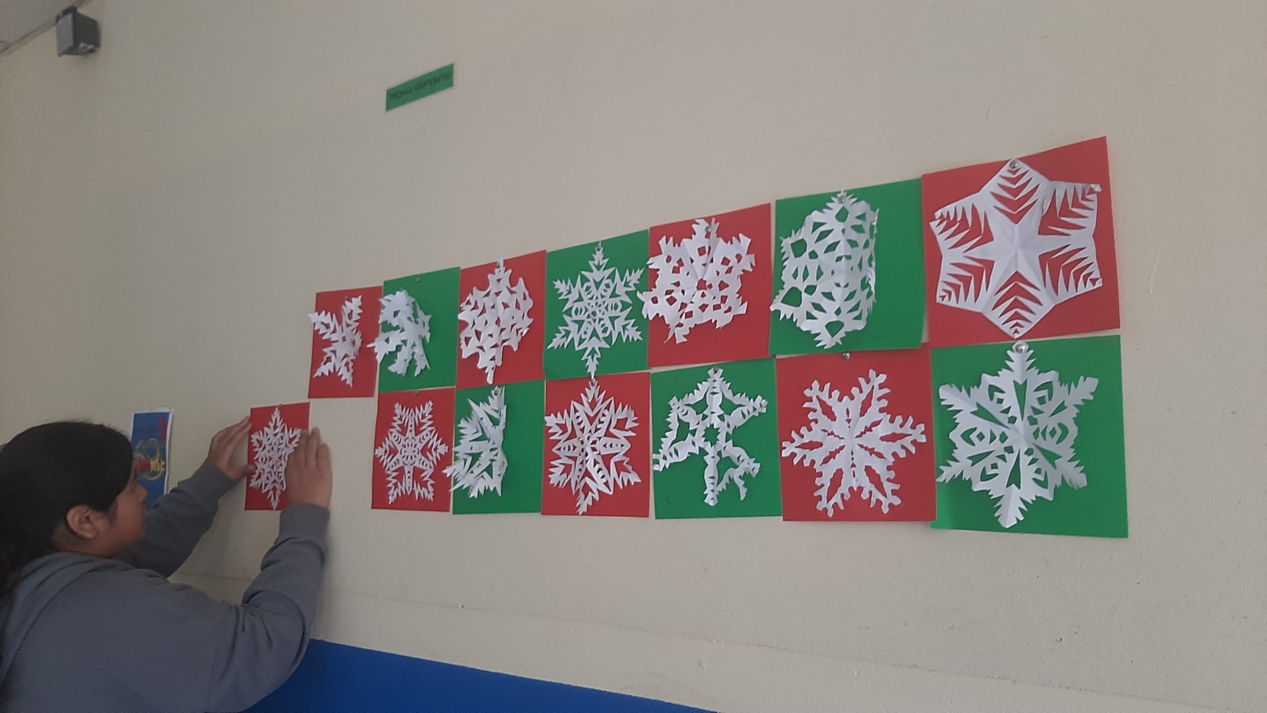 L’alumnat de 2n C ha començat a preparar un taller per Nadal. El taller consisteix en preparar un mosaic amb guirnaldes de Nadal fetes de paper.