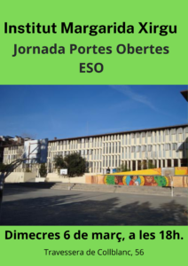 Jornada de portes obertesPer Equip directiu / 20/02/2024 / Activitats AMPA ESO Famílies General Organització / Portes obertes El dimecres 6 de març, a les 18h. celebrarem la jornada de portes obertes per al futur alumnat d’ESO. Us hi esperem!