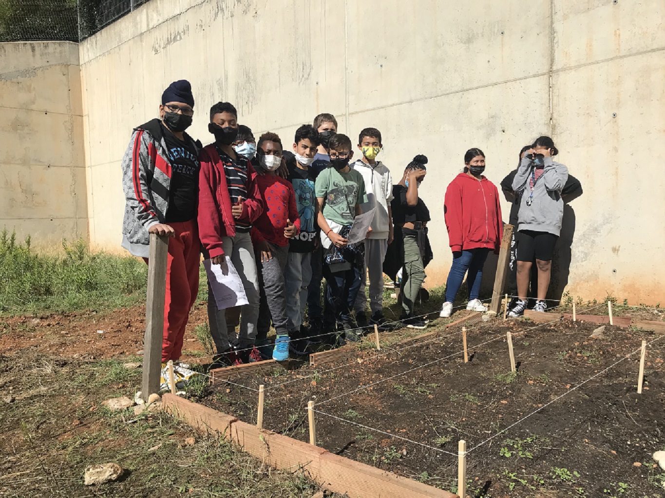 Els alumnes de 1r d’ESO que fem l’optativa d’hort, vam anar el 5 d’octubre a delimitar un dels bancals on plantarem vegetals, flors, etc.