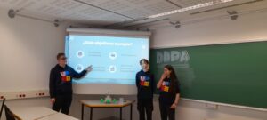 El passat 30 d’abril l’alumnat de tercer d’ESO Luca Bouman, Martina Cattaneo i Eric Dulhai, es van classificar en primer lloc de la seva categoria en les II Olimpiades de Telecomunicacions Catalanes. Avui han realitzat la defensa del seu projecte a nivell nacional davant d’un tribunal format per les facultats de telecomunicacions de Granada, Saragossa I Màlaga.