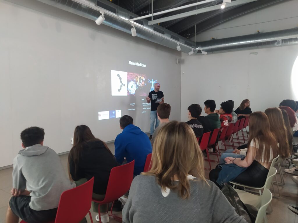 Els alumnes de física y química de 4t d’ESO han participat al festival 10alamenos9 al centre cívic Pere Quart. Aquest festival es celebra en diferents països del món i ara ha arribat a Barcelona. Els estudiants han pogut gaudir d’una xerrada sobre nanomedicina de la dra Sonia Trigueros i d’un munt de tallers per acostar-los al nanomón: superfícies hidrofòbiques, encapsulació, producció d’hidrogen, la paradoxa de Maxwell, el microscopi de forces atòmiques, nanopartícules d’or, notícies falses sobre nanotecnologia i també una exposició sobre energia.