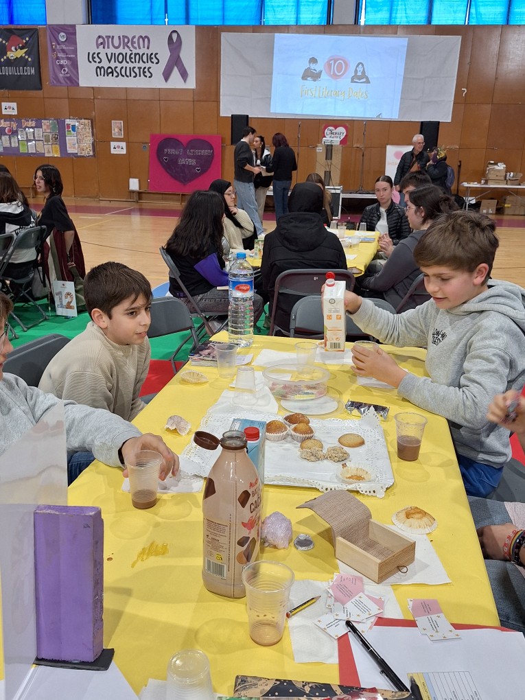 Ahir a la tarda es va commemorar l’aniversari del First Literary Dates, que ha celebrat 10 anys. Una quarantena d’alumnes del Mercè van participar en l’edició d’enguany al Poliesportiu Municipal Marina Besòs de Sant Adrià del Besòs. Aquest any, com l’anterior, ha crescut el nombre de participants, uns cinc-cents alumnes provinents d’una quinzena de centres i, a banda, s’ha comptat amb la presència d’observadors de centre recursos, biblioteques i centres de secundària. Així mateix diversos mitjans de comunicació van voler ser-hi presents. Una xifra rècord que fa que aquesta trobada-berenar per compartir lectures, fer noves amistats, i sobretot, socialitzar al voltant de les lectures dels menús literaris d’enguany, hagi estat un èxit.