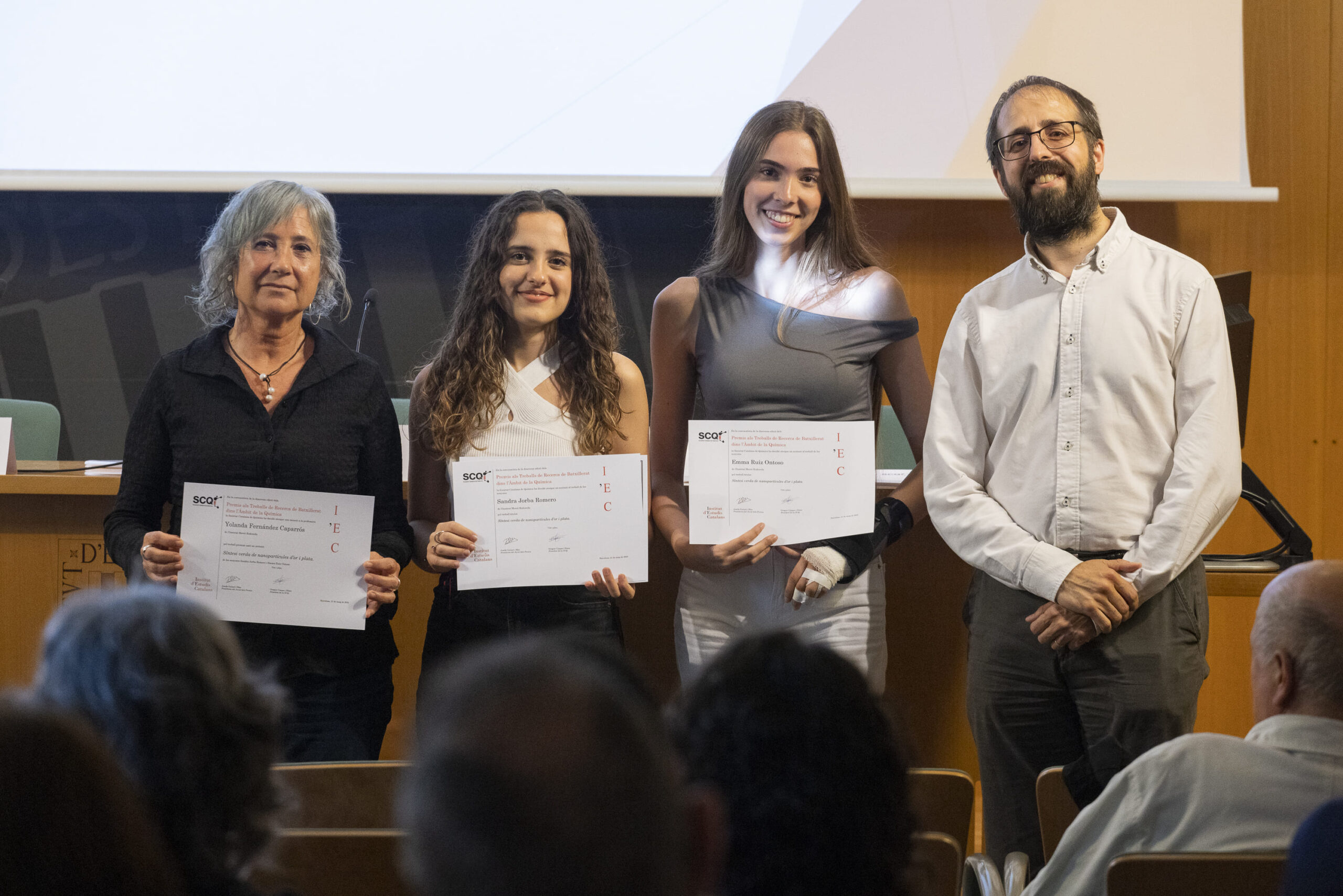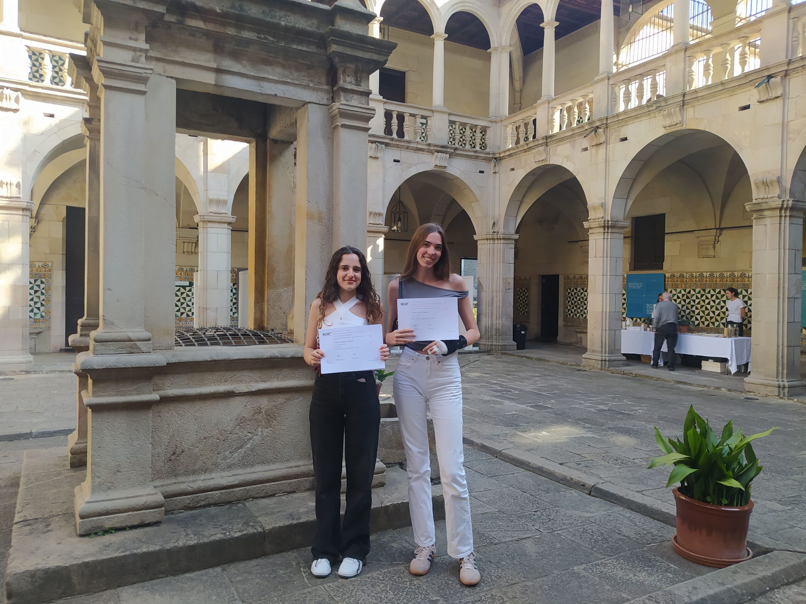 El passat 21 de maig les alumnes de segon de Batxillerat Sandra Jorba i Emma Ruiz van recollir l’accèssit de la Societat Catalana de Química pel seu treball de recerca “Síntesi de partícules verdes” tutoritzat per la professora Yolanda Fernández. El jurat ha valorat la tasca realitzada a l’utilitzar reactius naturals com el suc de llimona, les fulles d’arboç o la rapa de raïm per sintetitzar nanopartícules d’or i plata. El premi va anar acompanyat d’un diploma i un xec de 150€.