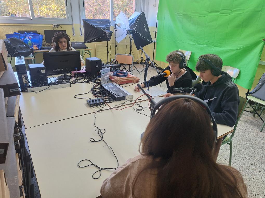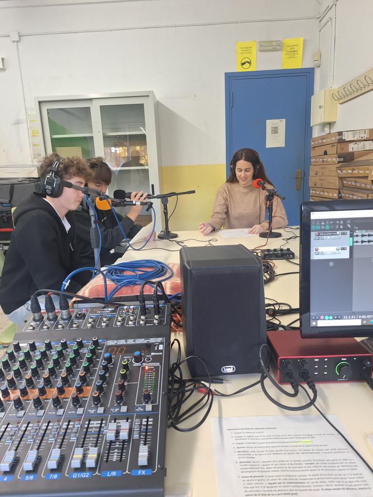 El curs passat es van celebrar els 100 anys de la ràdio i amb l’arribada de la maleta audiovisual amb el kit de ràdio vam voler que l’optativa de Periodisme digital, orientada més al format visual, també s’obrís a la ràdio. Hem optat per la creació de píndoles amb notícies, entrevistes, falques musicals i altres propostes sonores que mitjaçant els pòdcasts ens permeten arribar als nostres oients.