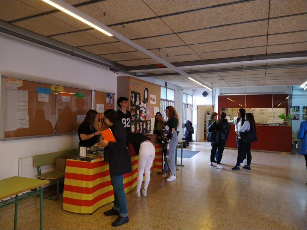 dia de Sant Jordi, al vestíbul del centre, com cada any hi va haver la mostra de les últimes novetats en literatura juvenil seleccionada i cedida per l’Abacus. L’alumnat podia omplir una enquesta sobre quins d’aquests llibres els agradaria llegir en una nova edició del “Tu tries!” i posteriorment entre els participants es van sortejar dos exemplars.