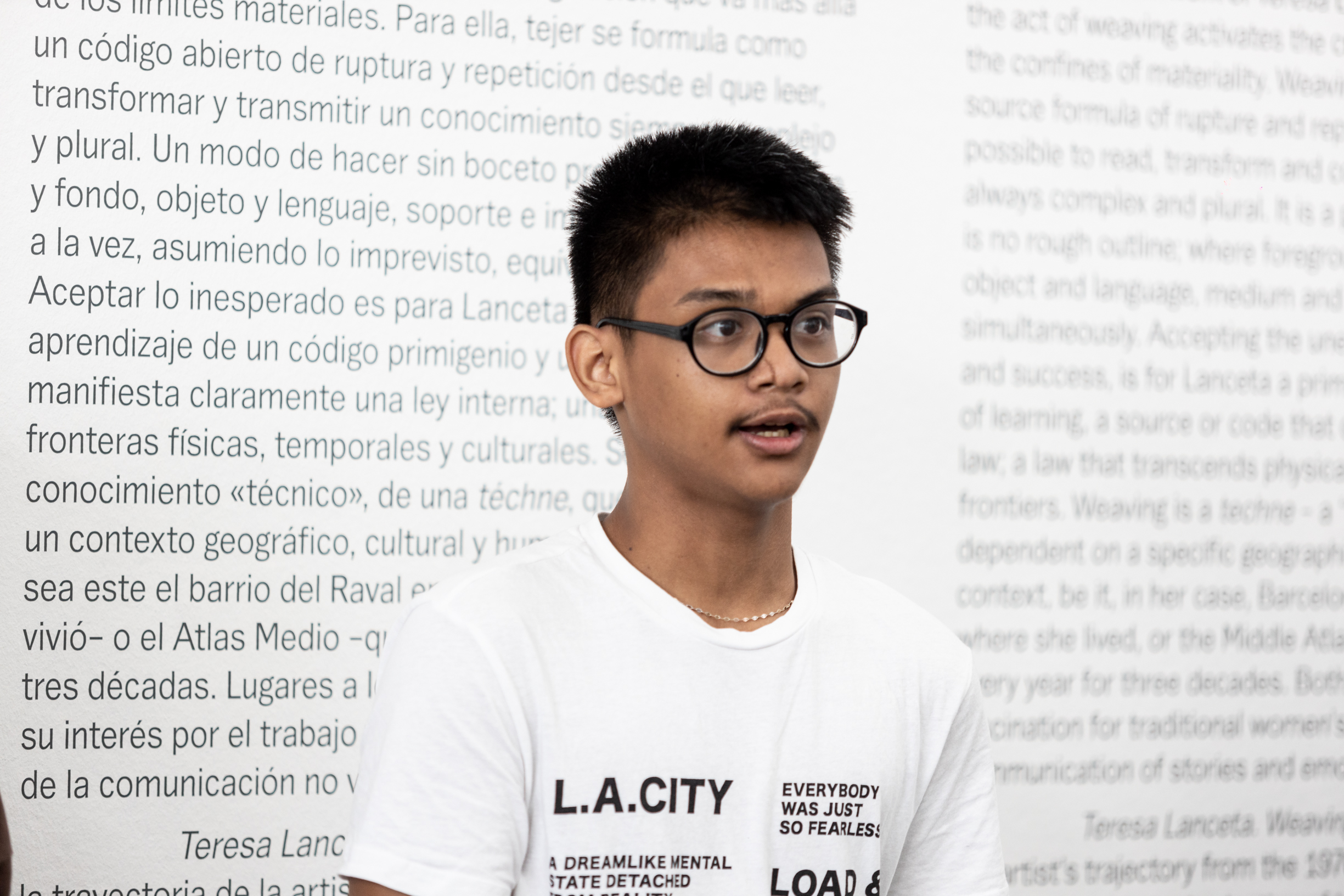 Avui hem fen la darrera visita guiada per a grups escolars a l’exposició de la Teresa Lanceta. Hem acompanyat els nois i noies de 1r d’ESO A, la seva tutora Àngels, i els professors Marcel i Joan. Com a present especial, un més, avui ha fet el recorregut amb nosaltres el fotògraf Dani Cantó, qui ens ha regalat aquestes magnífiques fotos que expliquen perfectament l’ambient relaxat i la professionalitat amb què han actuat els amfitrions.