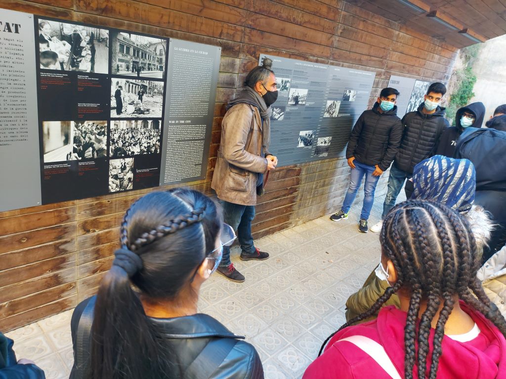Després d’unes quantes setmanes treballant la història i la morfologia de la ciutat, l’alumnat de 4t d’ESO hem visitat un dels milers de refugis que els barcelonins van construir per evitar les bombes durant la Guerra Civil espanyola. Concretament, hem visitat el refugi 307, al Poble Sec. Un cop allà, el Marc ens ha explicat amb tota mena de detalls per què a principis de l’any 37 la ciutadania es va mobilitzar per construir uns espais segurs, que els van servir com a defensa passiva quan bombardejaven la ciutat. En el transcurs de la visita, hem travessat el passadís de 400 metres de llargada en forma de ziga-zagues per interferir l’entrada de la metralla al refugi, i ens hem fixat en la part destinada a la infermeria i el lavabo.