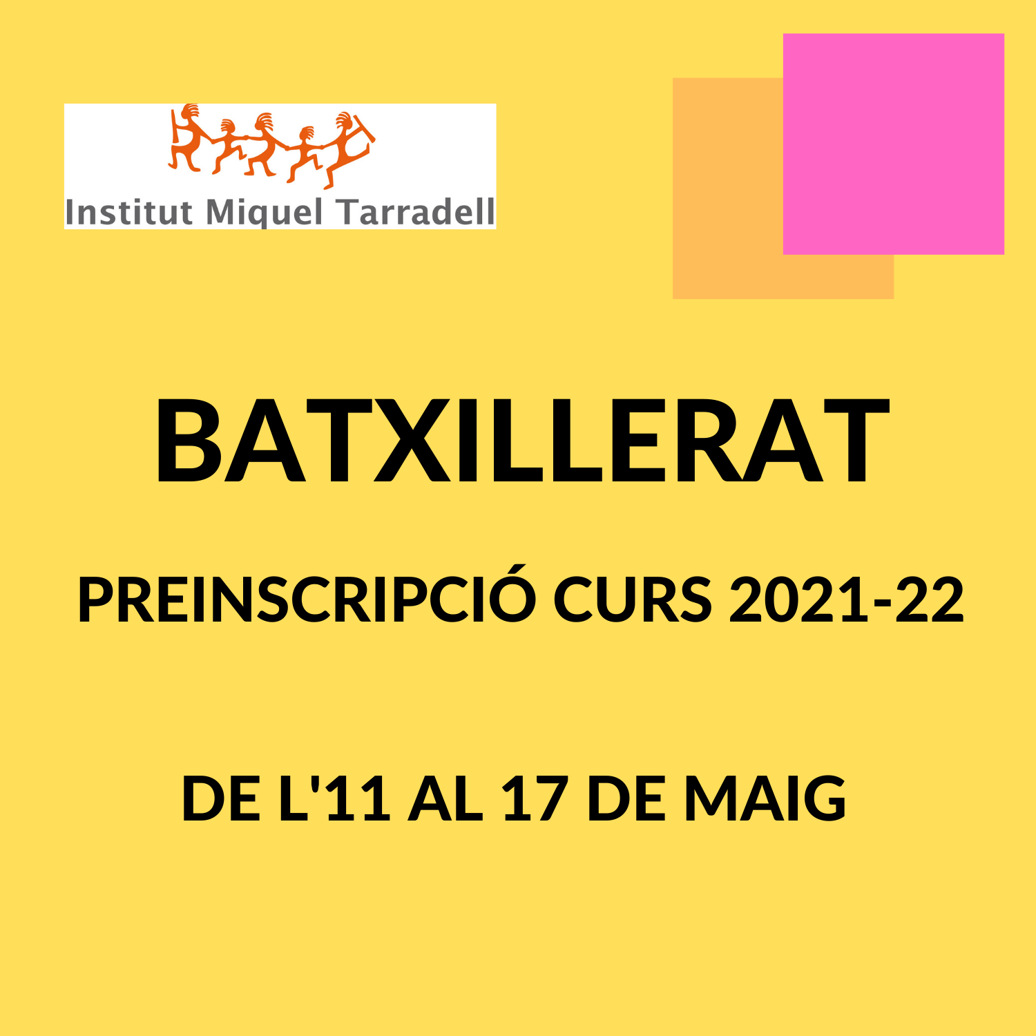 Preinscripció Batxillerat – 11 al 17 de maigPer admin / 10 de maig de 2021 / General Notícies Batxillerat Tota la informació