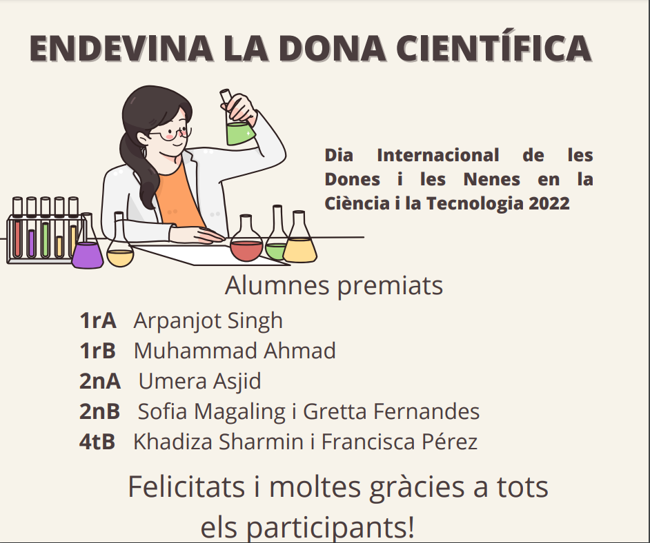 Premis!!! Feu un comentari / Per admin / 24 de març de 2022 / General Ja tenim els resultats del concurs Endevina la dona científica!