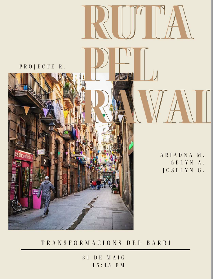 Com a activitat final del Projecte Raval, l’alumnat de 1r de Batxillerat social-humanístic farà de guies culturals en rutes pel barri del Raval per donar a conèixer la seva història i les seves transformacions urbanes.