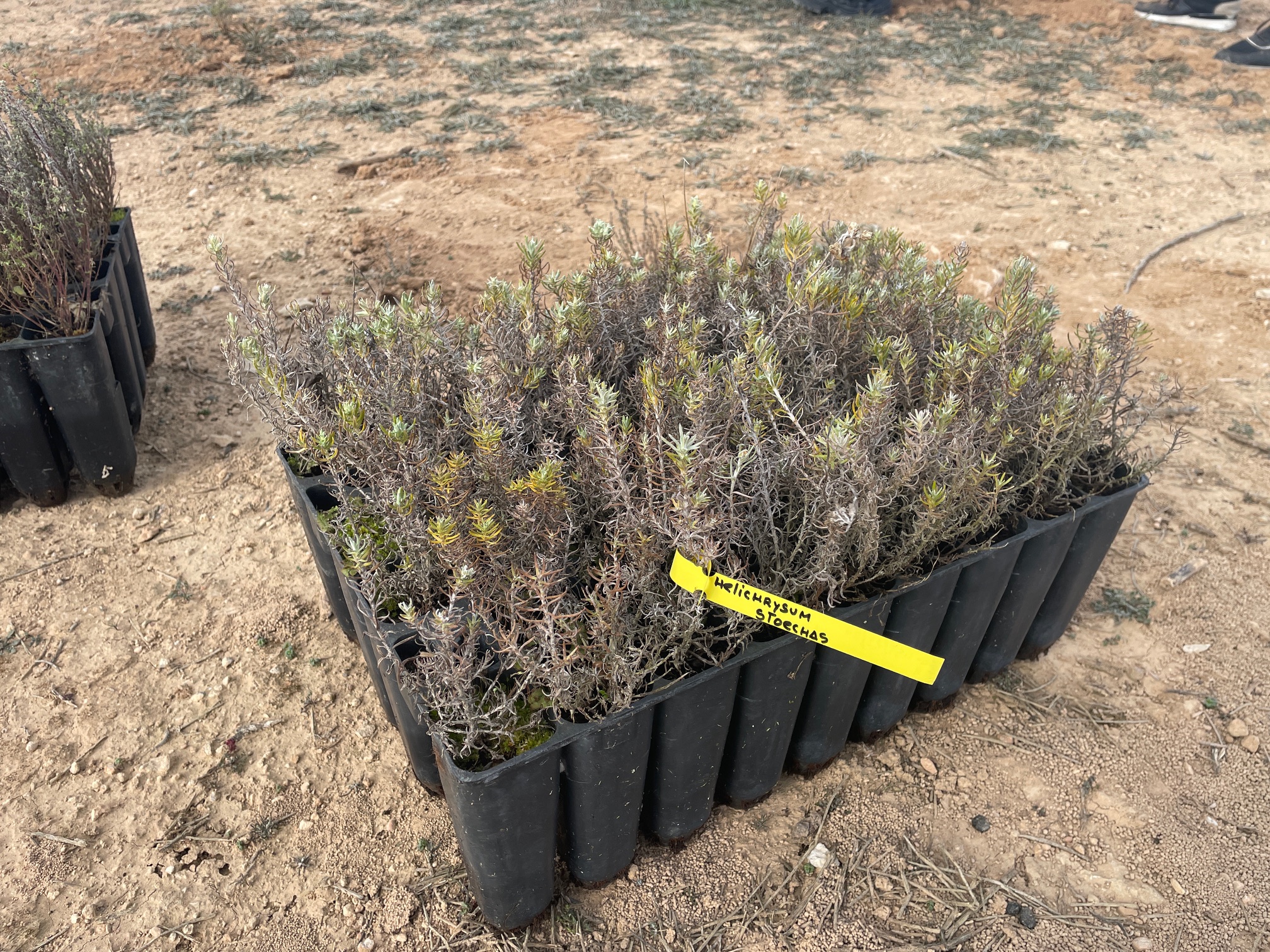 Avui s’han identificat les espècies vegetals que es descriuran en el futur itinerari botànic de la Reserva i s’han plantat 300 exemplars de espernallac (Santolina chamaecyparisses) i sempreviva borda (Helichrysum stoechas) per a millorar l’hàbitat de l’Alosa.
