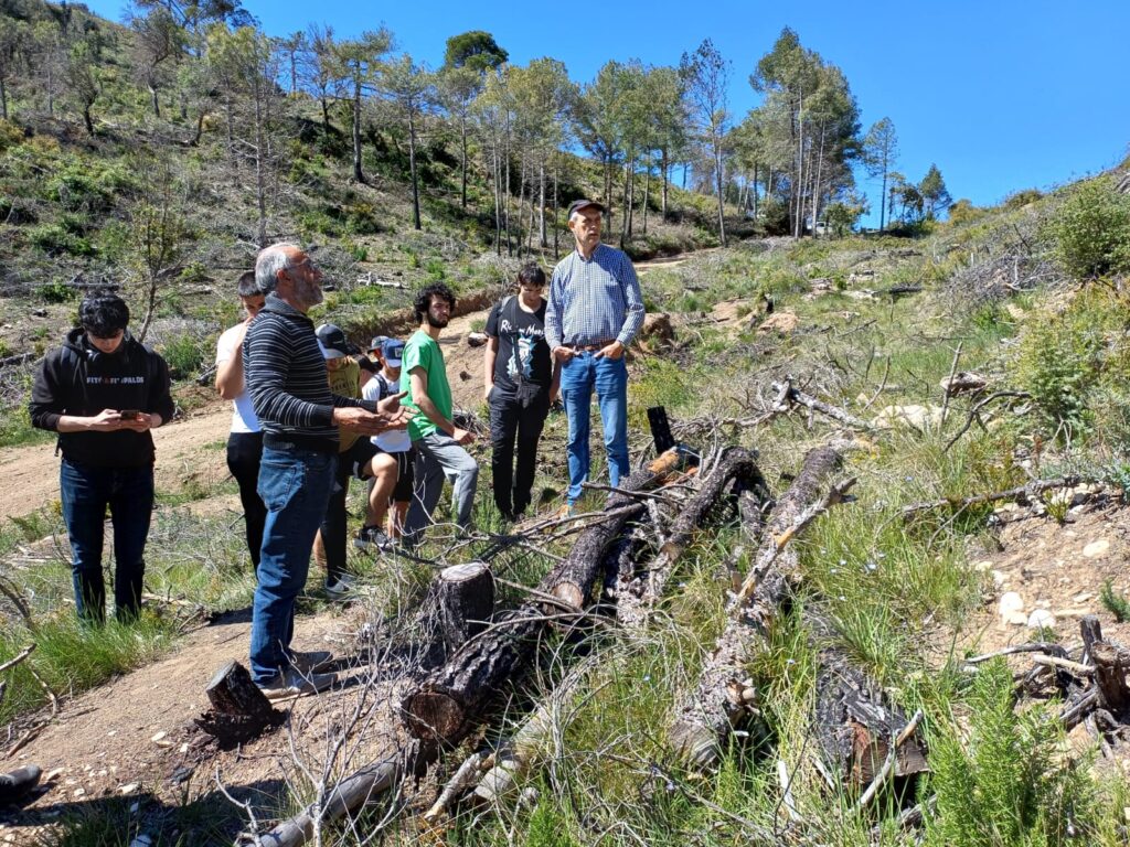 El dia 9 de maig, els alumnes del CFGS de Gestió forestal i del medi natural van visitar els terrenys cremats per l’incendi de 2021 a la Serra de Miralles (Anoia). Guiats pel tresorer de l’Associació de Propietaris Forestals Miralles-Orpinell David Argelich, van poder veure els treballs posteriors a l’incendi fets sota la supervisió de la Diputació de Barcelona per tal d’afavorir la regeneració del bosc i la conservació del sòl.