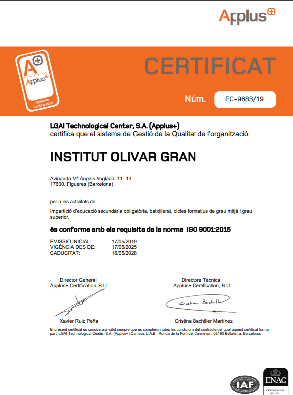 Famílies de l’alumnat que cursarà 1r d’ESO 18 de febrer de 2026 Aforament limitat Presentació de la Jornada de Portes Obertes. Famílies de l’alumnat que cursarà 1r de BATXILLERAT 24 de març de 2026 17.00 h No cal inscripció prèvia. Famílies de l’alumnat que cursarà 1r de BATXIBAC 3 de març de 2026 17.00 h No cal inscripció
