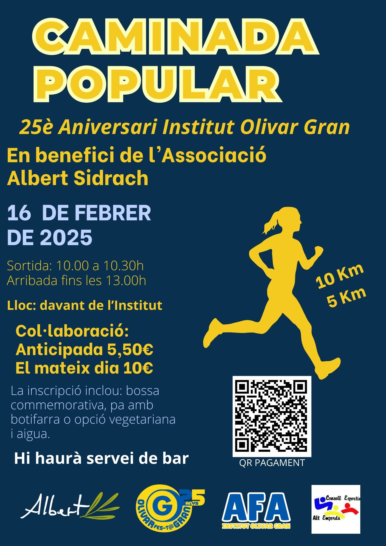 El 16 de febrer l’Institut Olivar Gran organitza una caminada popular en benefici de l’Associació Albert Sidrach. Apunta-t’hi! Pots fer el pagament anticipat aquí