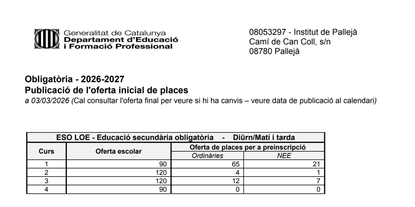 Ja pots consultar l’oferta inicial de places a 3/3/26.