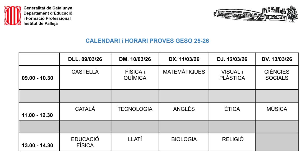 L’Institut de Pallejà convocarà aquestes proves entre el 9 i el 13 de març de 2026.