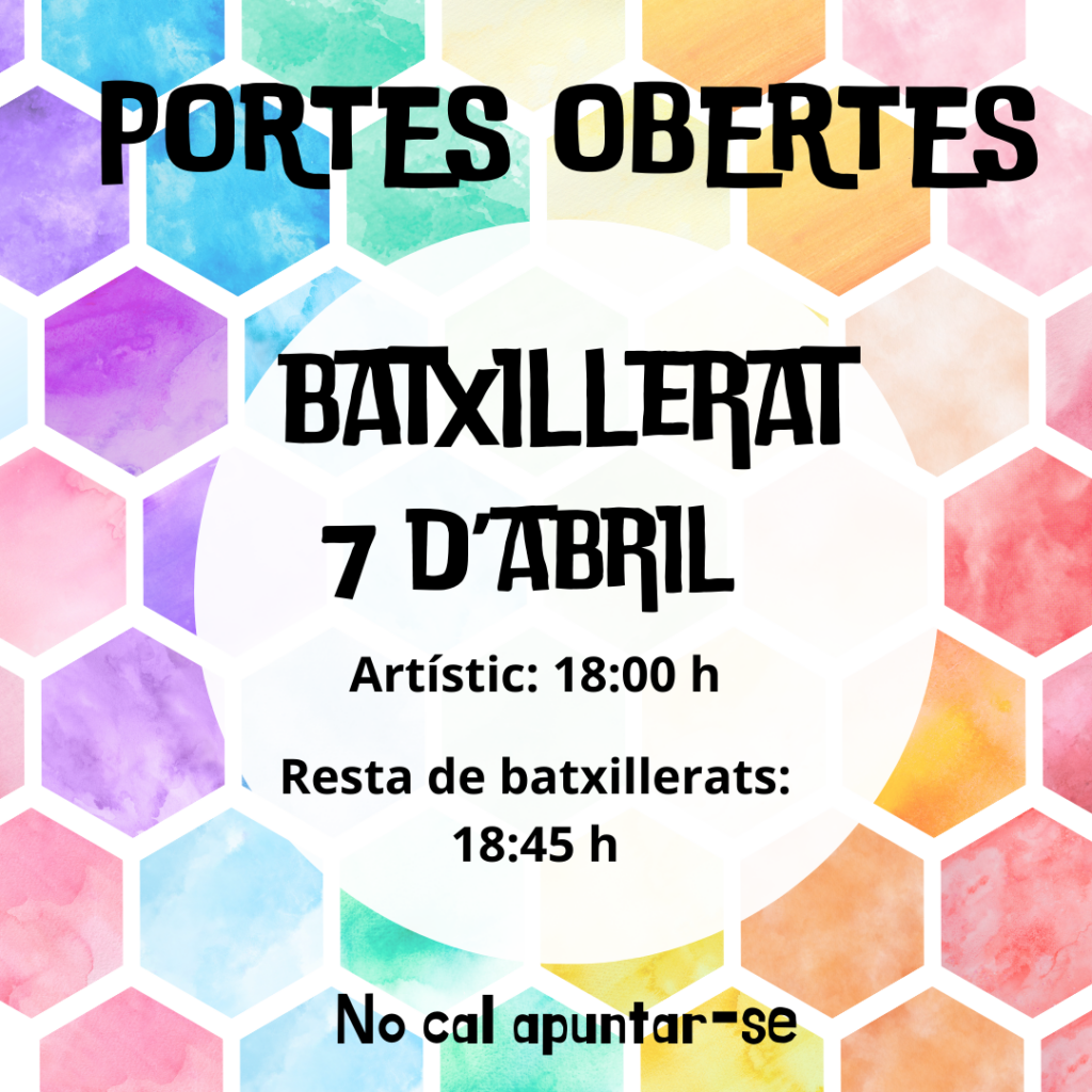 Ens plau convidar-vos a l’exposició interdisciplinar del nostre alumnat del Batxillerat Artístic del curs 25-26, que tindrà lloc el proper divendres 6 de març a les 18 hores, a la Caserna CIPH de Mratorell (Passeig Quarter 9 – La Vila). L’exposició, que porta per nom “Art en diàleg”, és una mostra de creació i reflexió dels nostre alumnat d’entre 16 i 18 […]