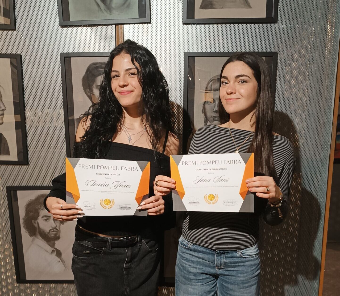 El passat divendres 6 de Març en l’acte inaugural de l’exposició ART EN DIÀLEG del batxillerat artístic es van lliurar els premis als millors recorreguts acadèmics en les especialitats de Disseny i Dibuix Artístic, a les alumnes Claudia Yáñez i Jana Sans. Enhorabona!