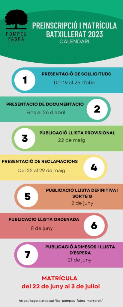 INFORMACIÓ PER LA PREINSCRIPCIÓ. BATXILLERATPer INSTITUT POMPEU FABRA / 03/04/2023 / Batxillerat Portada Preinscripció