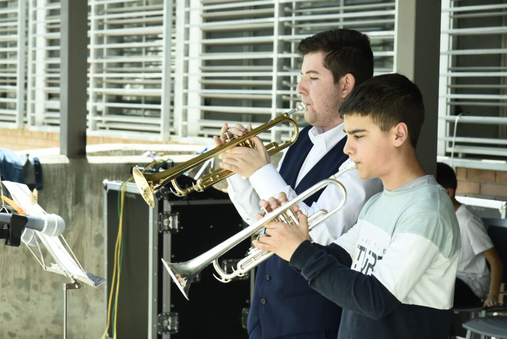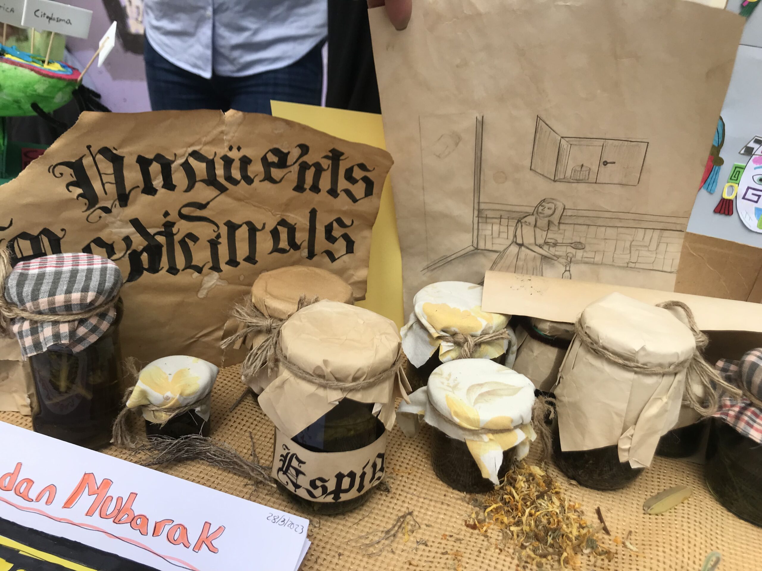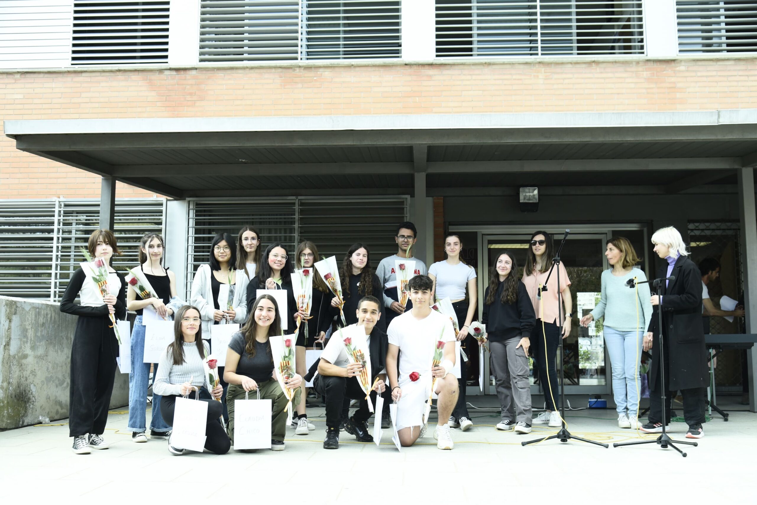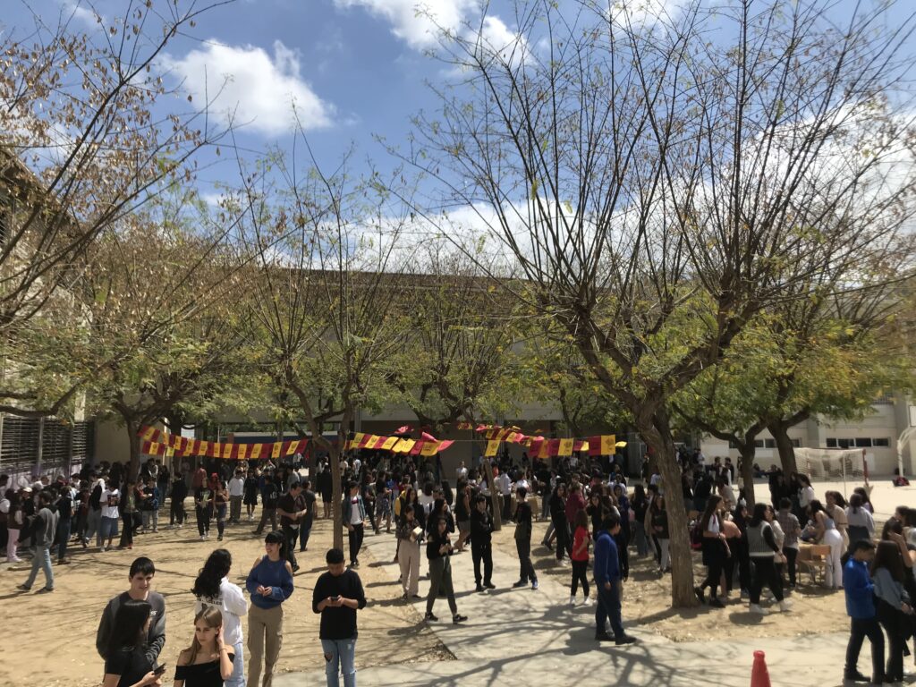 Divendres 21 els alumnes van poder gaudir d’una jornada festiva per celebrar el dia de Sant Jordi, el pati de l’institut es va convertir en un mercat medieval on alumnes i professors van poder vendre i intercanviar llibres, exposar el que s’ha fet a classe als projectes, recollir diferents premis de literatura, matemàtiques… i vam poder escoltar un magnífic concert.