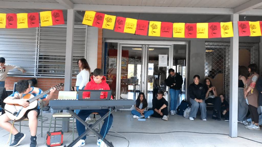 Els alumnes van interpretar música en directe. I també amb música en directe, van recitar poemes, celebrant així, aquesta emotiva jornada de Sant Jordi.