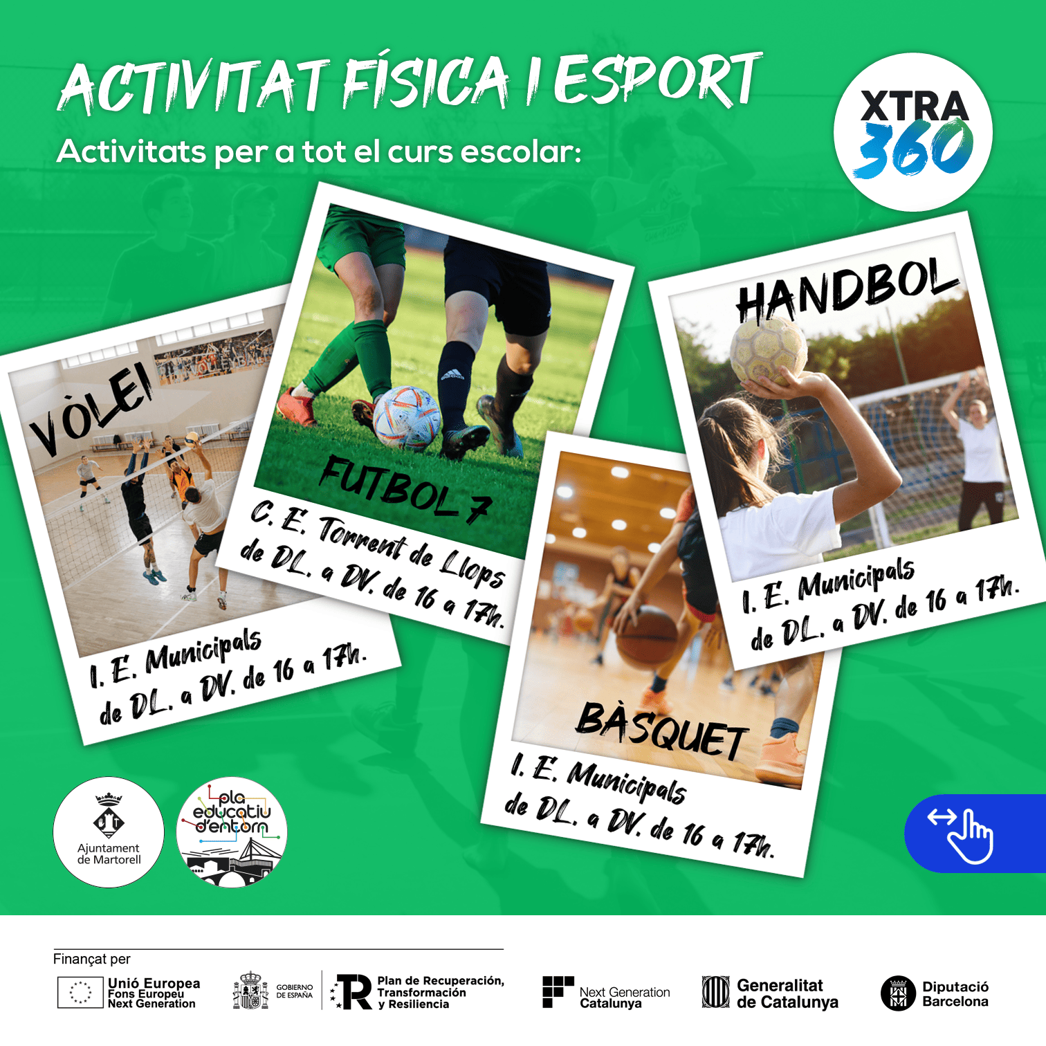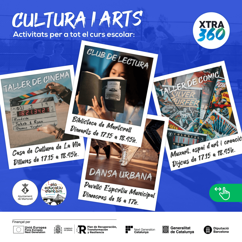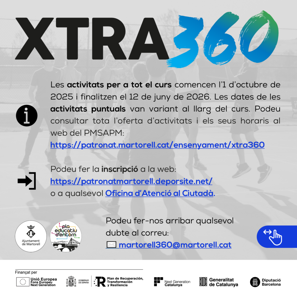 Ja tenim aquí les activitats extraescolars que organitza l’Ajuntament de Martorell, una molt bona oportunitat perquè els vostres fills practiquin esport, vòlei, futbol, bàsquet, handbol; o facin allò que més els agrada, cinema, lectura, còmic, dansa!