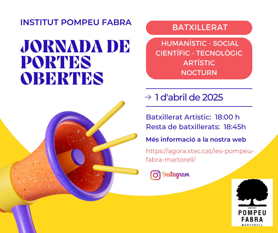 PORTES OBERTES BATXILLERATPer INSTITUT POMPEU FABRA / 12/02/2025 / Batxillerat General Portada Preinscripció