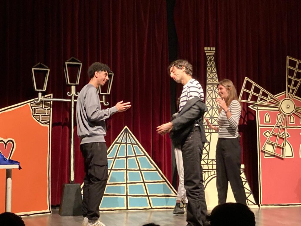 Els alumnes de francès de 4t ESO i 1r de batxillerat han anat a veure l’obra “Emília arrive à Paris” a l’Auditori Barradas de l’Hospitalet. Després de l’obra els alumnes van participar en el col·loqui amb els actors i els van saludar i es van fer una foto.