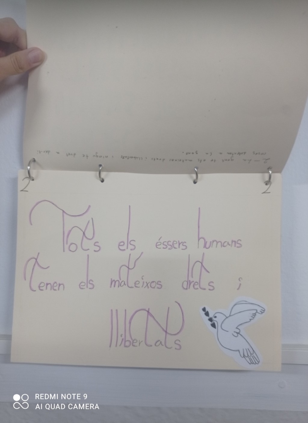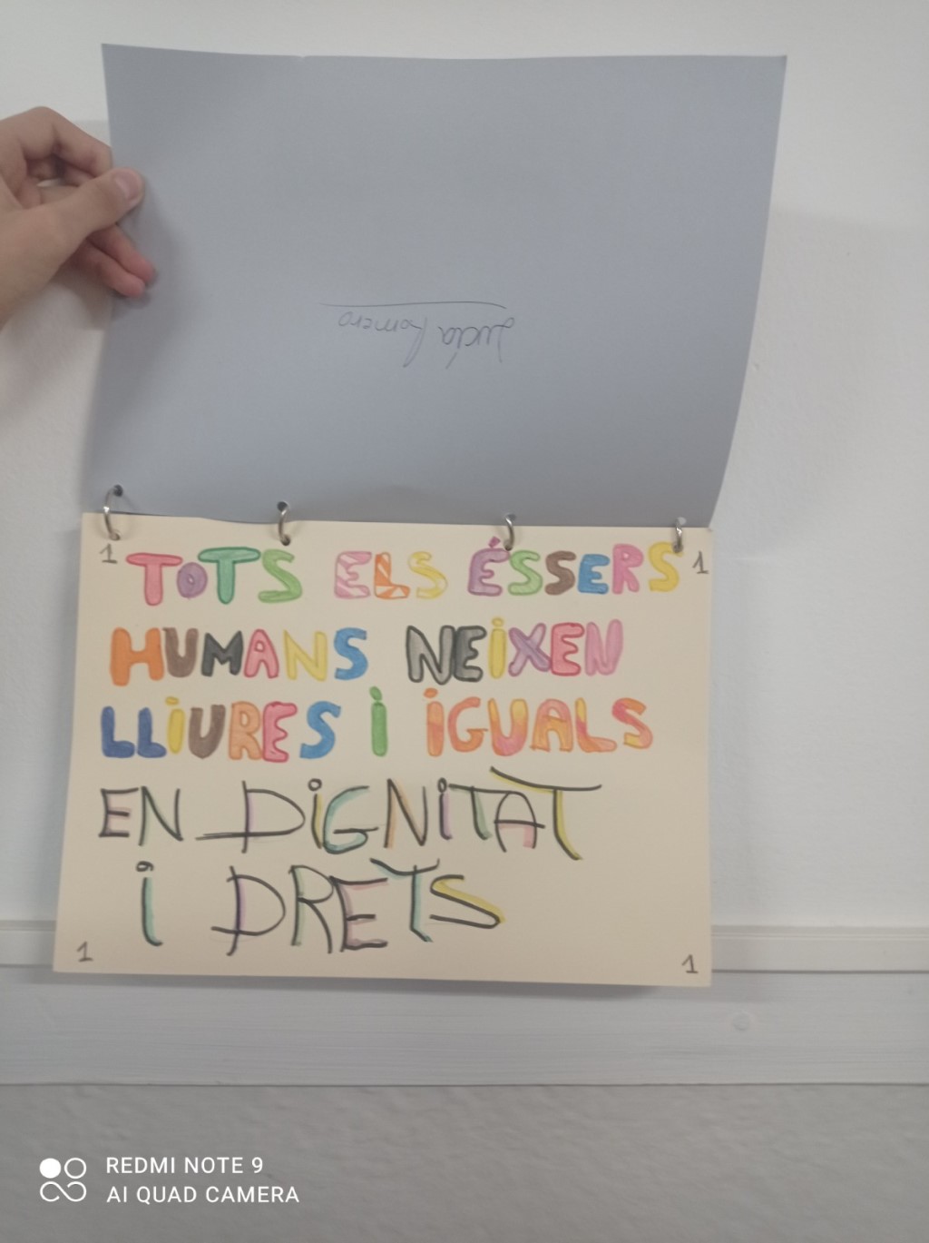 ELS DRETS HUMANS A CULTURA I VALORS ÈTICS Feu un comentari / Per Quim / 29 de març de 2022 / Cercle de les Ciències Socials / Ciències Socials, Cultura i Valors Ètics, Drets Humans L’alumnat de 1r ESO E, ha fet un “calendari del Drets Humans” per a treballar aquest tema, dins de la matèria de Cultura i Valors. ROSA ORDOÑO