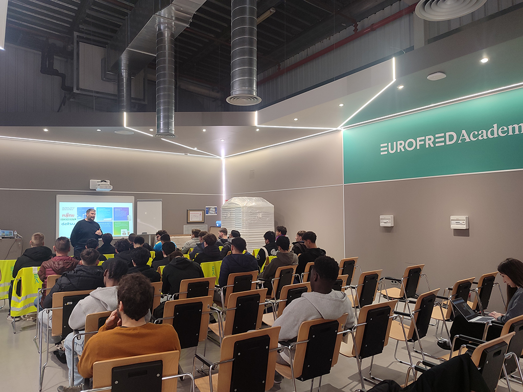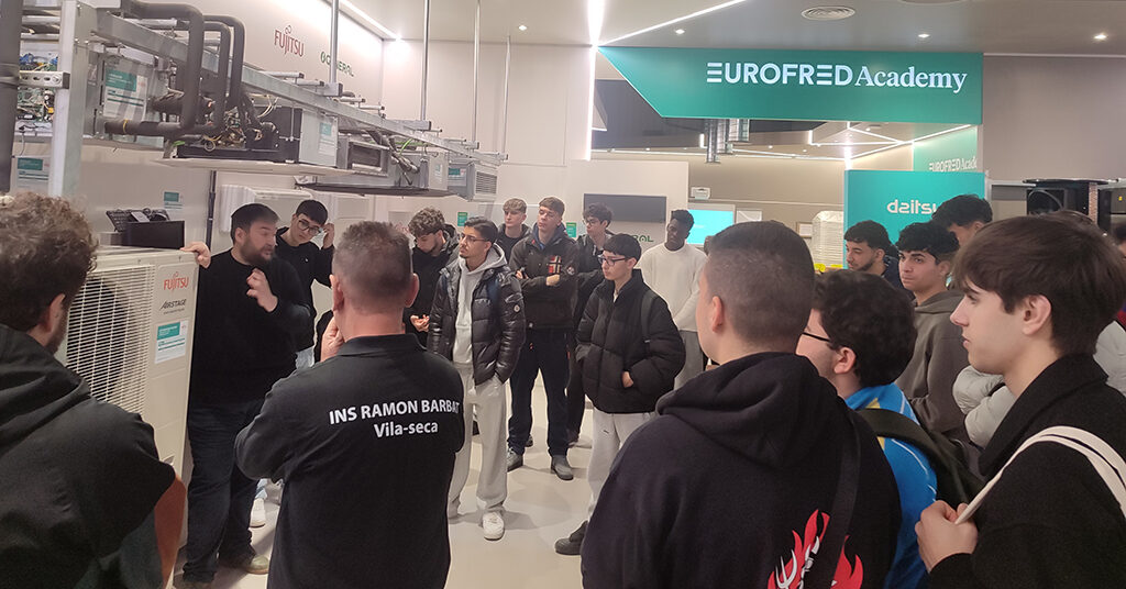 📅 El passat dimecres 4 de març, l’alumnat del Cicle Formatiu de Grau Mitjà d’Instal·lacions Frigorífiques i de Climatització i del Cicle Formatiu de Grau Superior de Manteniment d’Instal·lacions Tèrmiques i de Fluids de l’Institut Ramon Barbat ha realitzat una visita tècnica a les instal·lacions d’EUROFRED Academy, el centre de formació de l’empresa Eurofred especialitzat en tecnologia de climatització i refrigeració.