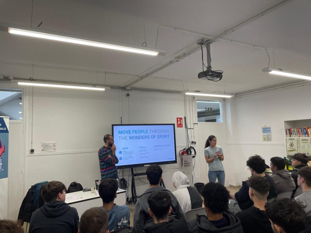 Avui hem rebut la visita de Marc Morales, exalumne del nostre centre, i Laia Altés, tots dos professionals de Decathlon Reus. 🏀🎽 Ens han presentat Decathlon en l’àmbit global i ens han explicat com és treballar en una empresa líder en el sector esportiu.