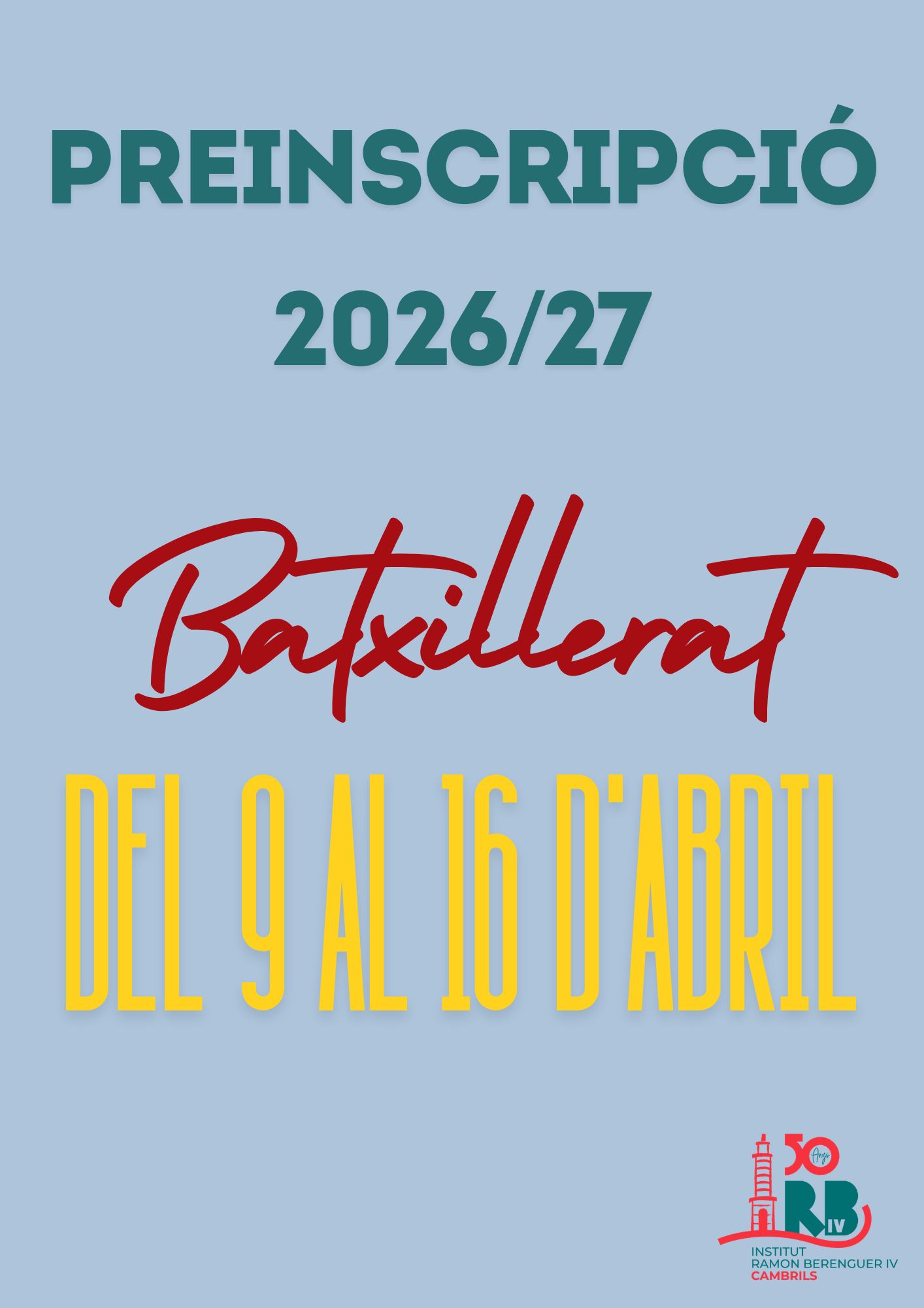 S’obre el període de preinscripció al Batxillerat per al curs acadèmic 2026-2027