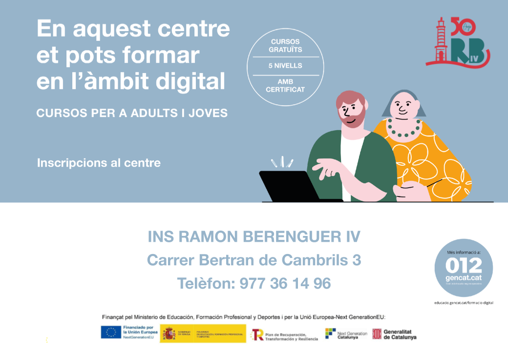 L’INS Ramon Berenguer IV (Cambrils) ofereix nous cursos de capacitació digital per a persones adultes i joves a partir del mes de gener del 2026 amb l’objectiu de donar resposta a les necessitats creixents de formació en competències digitals, imprescindibles en l’àmbit laboral actual i… Llegeix més»