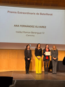 L’ex-alumna de l’Institut Ramon Berenguer IV Ana Fernández Álvarez ha estat distingida amb un dels Premis Extraordinaris de Batxillerat 2023-2024, un reconeixement que posa en valor l’excel·lència acadèmica i la dedicació dels estudiants que han destacat en aquests estudis.