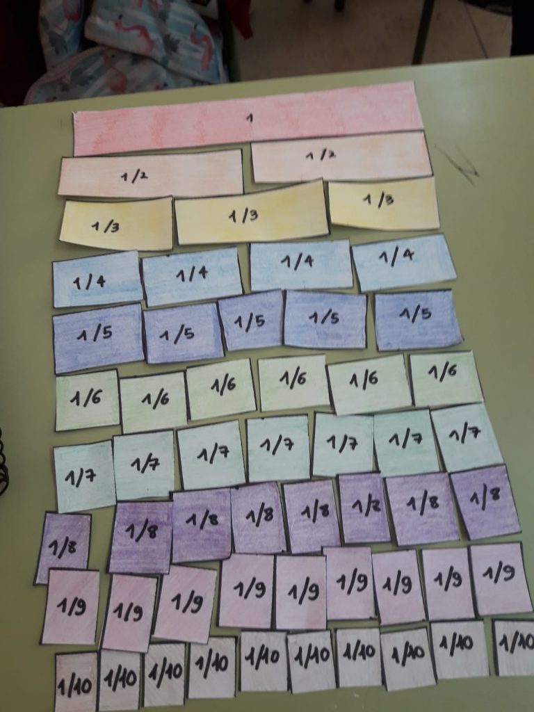 Els nois i noies de 1r d’ESO estan aprenent operacions amb fraccions. Per treballar-les han creat una “taula de fraccions” on poden experimentar de forma pràctica el significat d’aquestes. Diferents metodologies per treballar totes les intel.ligències.