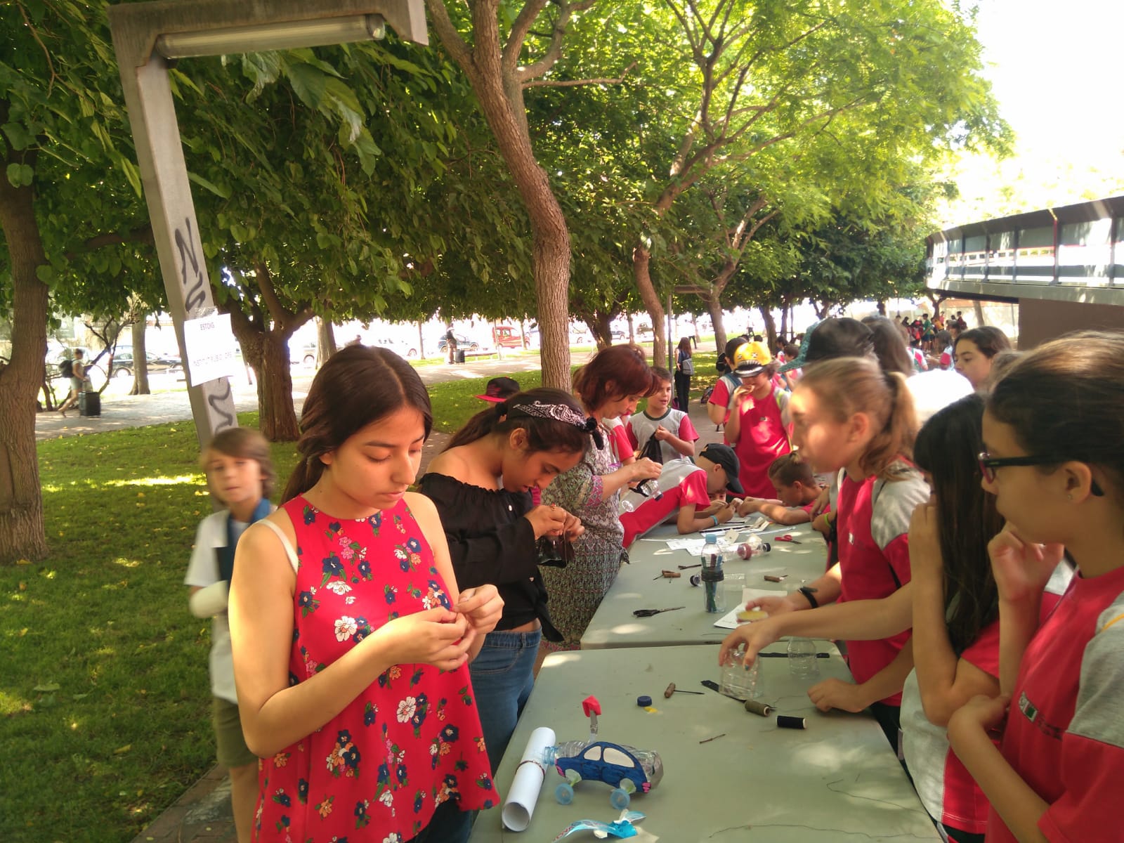 Els alumnes de 2n ESO B han anat a la Cloenda del curs de l’Agenda 21 als jardins del Centre Cultural Metropolità Tecla Sala on han gaudit dels diferents tallers de reciclatge relacionats amb el medi ambient i d’activitats que han comptat, entre d’altres, amb un autobús híbrid, un circuit de bicicletes, una cuina solar, cotxes impulsats per aire i pesca de residus.